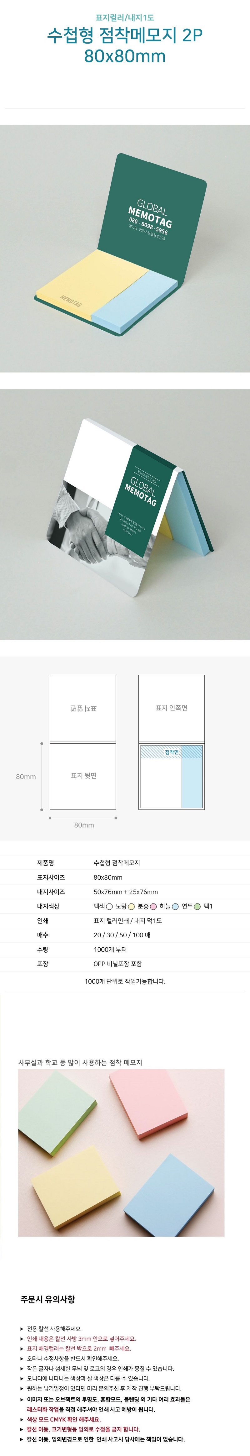 ¼öøÇü Á¡Âø¸Þ¸ðÁö 80*80mm 1P (20¸Å/30¸Å/50¸Å)